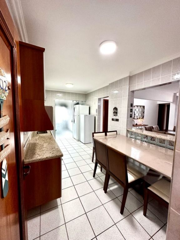 Apartamento à venda na Guilhermina - Praia Grande!Características do imóvel:- 148 m2- 04 quartos, todas suíte, sendo uma com sacada- 01 sala para 02 ambientes com sacada- Cozinha americana com copa e planejados- Lavabo- Área de serviço- Dependência de empregada- 02 vagas de garagem cobertas- Andar alto vista para o marCondomínio:- Elevador Social- Elevador de Serviço- Acessibilidade- Portão Automático- Portaria 24h- Circuito Fechado TV- Água Individual- Piscinas adulto e infantil- Salão de Jogos- Salão de Festas- Espaço Gourmet- Churrasqueira- Prédio frente para o marAgende uma visita com um de nossos corretores!