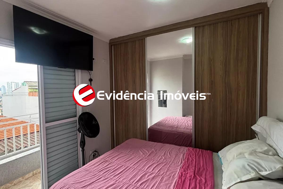 Venda de cobertura residencial com 72 m² de área interna, 2 quartos, 1 sala, 1 banheiro e 1 vaga. Acabamento em cerâmica, área de serviço, box no banheiro, armários na cozinha e no banheiro, lavabo, interfone, portão eletrônico e churrasqueira. Localizada no Parque das Nações, Santo André. Imóvel ocupado, ideal para quem busca praticidade, conforto e segurança com infraestrutura pronta.